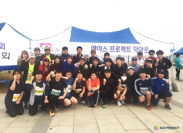 ...에이스프로젝트는 2011년 창립 이래 임직원 체력증진을 목표로 매년 봄과 가을, 마라톤에 참여해왔다. 그러다 2013년부터 직원들의 사회공헌 활동을 독려하고자 기부마라톤을 뛰기 시작했다. 핑크리본 마라톤, 소아암 환우돕기 마라톤에 이어 작년부터 행복한가게 마라톤에 참가하고 있다