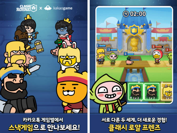 ... ■ 클래시로얄프렌즈 사전예약 페이지 https://gameevent. kakao. com/preregistrations/1007 카카오톡의 게임별을 통해 서비스될 클래시로얄프렌즈는 크래시로얄의 대표 8종 캐릭터와 카카오프렌즈캐릭터들이 등장하며 나만의 카드를 조합해 실