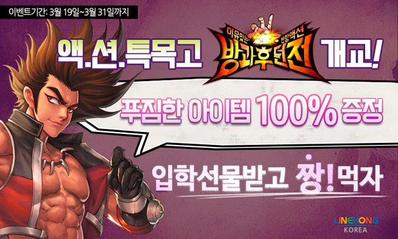 ... 안드로이드 4개 마켓 출시를 통해 오늘부터 정식 서비스를 제공하는 ‘방과후던전’은 이를 기념해 이벤트 기간 동안 40레벨 달성만 해도 골드200만개, 체력200개로 구성된 ‘학용품세트’를 증정하고, 추첨을 통해 백화점 상품권 1만원(100명)을, 전투력이 가장 높은 유저를 선정