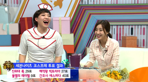 ... 이에 따라 유저 커뮤니티인 세븐나이츠 헝그리앱에서는 BJ고기의 벌칙 복장 투표를 통해 가장 많은 표를 얻은 코스프레 옷을 입고 다음 방송을 진행할 예정이다. 세븐나이츠 헝그리앱 ‘코스프레 투표’ 게시판에서 참여 가능하며, 추첨을 통해 헝그리앱 내의 가상화폐인 밥알 포인트