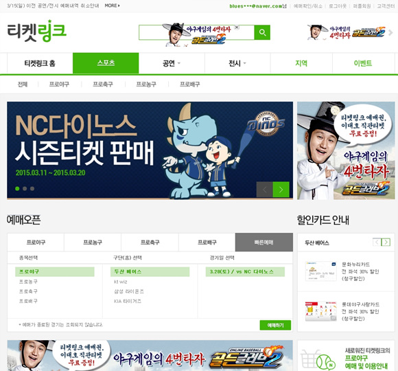 ...ticketlink. co. kr)에 당일 오픈 경기를 보여주는 ‘오늘의 예매오픈’ 코너를 신설했다