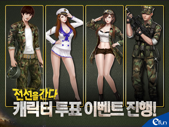 ... 17일(화)부터 오는 22일(일)까지 진행되는 이벤트는 남자 2명, 여자 3명 캐릭터 중 유저들이 마음에 드는 캐릭터를 투표해, 가장 많은 득표수를 얻은 남자 1명과 여자 1명의 캐릭터를 향후 업데이트 시 대장 캐릭터로 변경한다. 이와 함께 '전선을간다'는 16일(월)부터