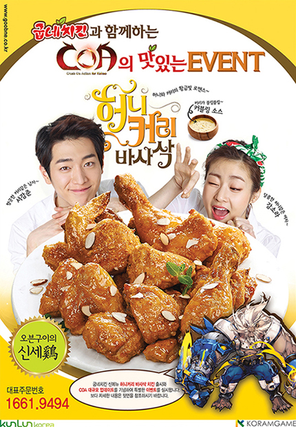 ... 양사는 굽네치킨을 구매하는 모든 게이머에게 'COA' '40레벨 전설급 아이템 2종', '특별 장비세트'로 구성된 3만원 상당의 ‘굽네치킨 특별 한정팩’을 제공한다. 이와 더불어 쿤룬코리아는 'COA' 공식카페와 SNS에서도 이번 프로모션을 더욱 재미있게 즐길 수 있는 다양