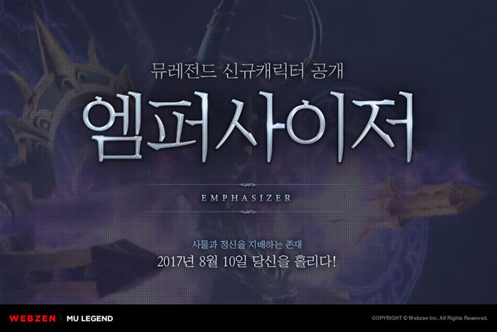 ... 엠퍼사이저는 오랜 기간 혹독한 수련을 통해 사물과 정신을 제어하는 능력을 갖추게 된 캐릭터다. 정교한 공격 능력을 바탕으로 다수의 적에게 강력한 피해를 입히는 ‘밸런스형 딜러’의 역할을 수행한다. 웹젠은 업데이트와 함께 엠퍼사이저의 목소리를 연기한 성우 윤아영의 인