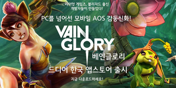 ... 회사 측은 한국 유저들을 위해 e스포츠 캐스터 전용준과 파트너를 맺어, 그의 목소리를 들으며 게임의 기본을 배울 수 있는 튜토리얼 영상을 게임에 실었다. 베인글로리는 현재 한국의 앱스토어에서도 아이패드2 이상, 아이폰5s 이상의 기기를 지원하며, 지난주에는 안드로이드 비공개