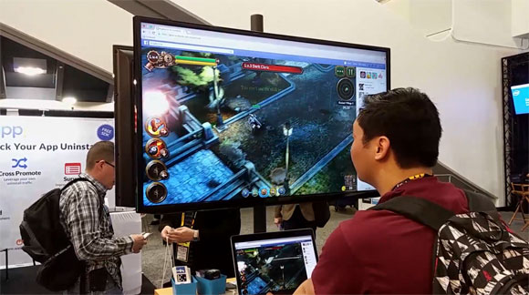 ... 또 튜토리얼부터 1스테이지 미션10까지 원하는 미션을 선택해 즐길 수 있었다. 시연자들은 페이스북 부스에 설치된 노트북을 통해 엔젤스톤의 데모버전을 플레이했다. 게임을 플레이 해 본 한 유저는 "기존 캐주얼과 SNG 육성 위주의 게임이 주를 이루던 페이스북 앱센터를 통해
