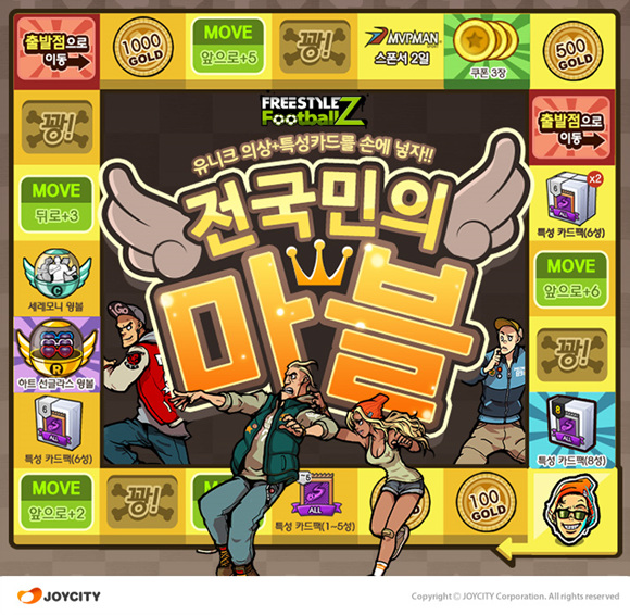 ... 주사위는 매일 ‘프리스타일풋볼Z’에 최초 접속 시 획득 가능하고, 경기 플레이를 통해서도 얻을 수 있다. 더불어 주말(금토일)동안 정해진 시간에 접속하는 유저를 대상으로 추가 경험치와 골드 혜택을 제공하는 ‘월간 Z타임’ 이벤트를 진행하고, ‘레더 블루종’, ‘강한 니키 세트