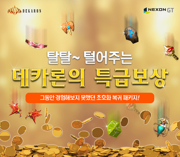 ... 데카론 홈페이지에서 쿠폰을 발급 받아 이메일, SMS, 페이스북 등을 통해 공유하면 된다. 쿠폰은 여러 계정에서 중복으로 등록해 사용할 수 있다. 초대한 유저와 초대받은 유저 모두에게 아이템이 지급되며, 초대받은 유저의 캐릭터가 ‘마이스터’가 되면 초대한 유저와 함께 추가 혜