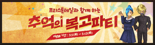 ... 또 추억의 복고 의상을 선보여 이용자들의 눈길을 끌고 있다. 이벤트 기간 동안 아이템 샵을 통해 모든 레벨의 유저에게 ‘복고형 교복 코스튬 상자’와 ‘현대형 교복 코스튬 상자’를 한정 판매한다. 해당 코스튬 착용 시 생명력, 방어력 및 흡수력이 상승하는 효과를 누릴 수 있다