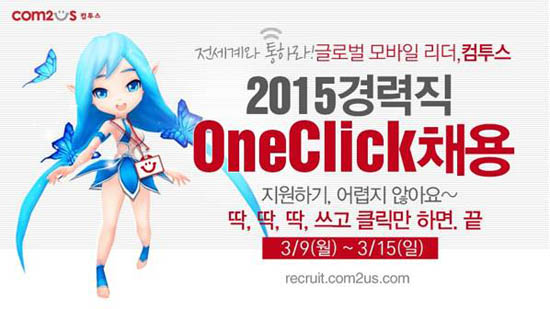 ... 채용 모집은 15일까지 컴투스 온라인 채용 사이트(recruit. com2us. com)에서 채용 배너를 클릭한 후 성명과 경력, 수행 프로젝트 등만 작성하면 입사 지원이 완료된다