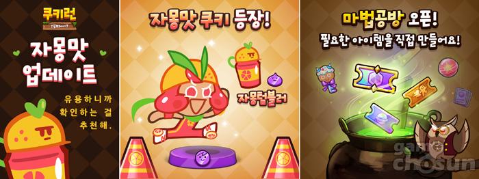 ...업데이트를 통해 최고급 쿠키상자를 포함한 뽑기권 8종, 신규 특수 티켓 4종, 무지개 큐브, 영혼의 물약, 마법사탕 등 약 60여개의 다양한 아이템의 마법 공식이 공개됐다. 또한 특정 재료를 갈아 마법가루 추출을 할 수 있고, 해당 가루를 활용해서 부족한 재료를 구매할 수도 있다