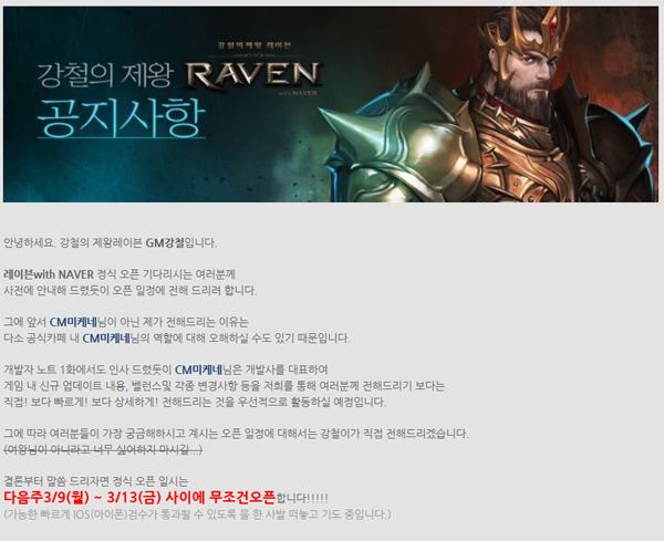 ... 넷마블게임즈는 지난 2월 20일부터 4일간 '레이븐'의 사전 테스트를 진행한 바 있다. 약 15만 명의 이용자가 사전 테스트에 참가하는 등 신작 게임에 대한 높은 기대감을 나타냈다. 하지만 테스트 종료 이후 일주일이 지났음에도 불구하고 별다른 소식이 없어 이용자들의 우려를 자