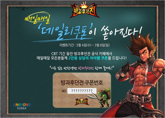 ...com/ci/2015/03/cpb2015_pre/event)를 통해 누구나 신청할 수 있으며, 참여한 모든 이용자에게는 정식 출시 이후 사용할 수 있는 스타 플레이어 카드를 지급한다. 또 페이스북과 카카오톡 등 SNS를 통해 이번 이벤트를 공유하면 하루 최대 10번까지 자신이 원