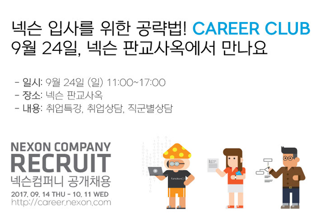 ...이와 동시에 사옥 2층에서는 오후 5시까지 ‘일대일 취업상담’ 및 ‘직군별 전문상담’ 코너를 운영, 현직 실무자들과의 맞춤형 상담을 제공한다. 넥슨은 ‘커리어클럽’ 등록 페이지에서 22일까지 사전접수를 받는다. 사전접수 후 현장을 방문한 참관객에게는 소정의 기념품을 선물한다
