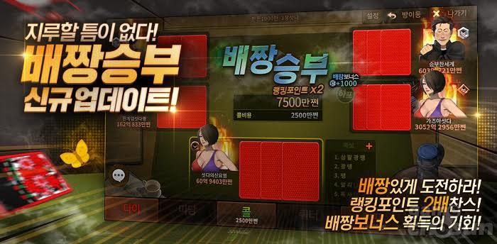 ...배짱승부 경기가 열리면 이용자는 패를 한 번에 모두 받고 블라인드 상태에서 배팅을 시작하게 된다. 최초 1구는 하프/다이 배팅만 가능하며, 이후 배팅은 기존 게임과 동일한 방식이다. 하프/올인/맥스 배팅을 할 때 마다 배짱 보너스 코인이 지급되고 배짱승부에 최종 결과까지 참여하는