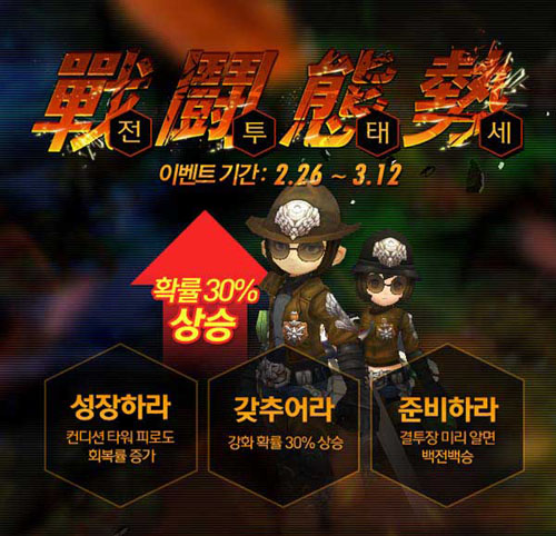 ... 그 외에도 장비 강화와 함께 상위 등급 소울을 얻을 수 있는 이벤트가 순차적으로 진행될 예정이다. 3월 5일까지 소환석 및 스페셜 소울 소환석 사용 시 상위 등급 소울을 획득할 확률이 30% 상승하며 3월 5일부터 12일까지는 장비 강화, 소울 강화, 진화 확률 모두 30%씩