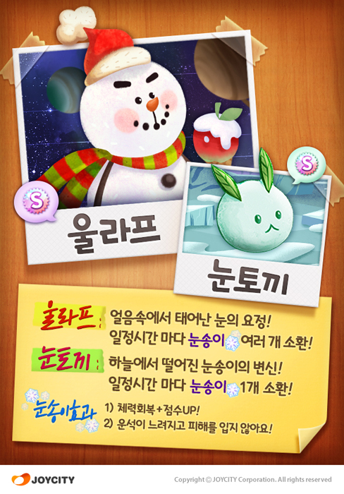 ... 조이시티는 이를 기념해 신규 캐릭터 ‘울라프’를 구매하는 유저 전원을 대상으로 구매 금액의 30%에 해당하는 ‘보석(게임캐쉬)’을 돌려주는 페이백 이벤트를 실시한다. 또, ‘탄산수’와 ‘얼음’을 각각 5개씩 모은 뒤, 과일을 선택해 에이드를 만들면 ‘골드(게임캐쉬)’,