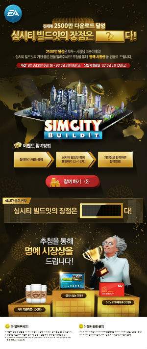 ... 이 게임은 명작 시리즈의 명맥을 성공적으로 이었다는 평가를 받으며 2500만 다운로드 돌파에 성공했다. 이에 EA코리아는 ‘심시티 빌드잇’ 글로벌 다운로드 2500만건 돌파를 기념해 내달 8일까지 감사 이벤트를 진행한다. [최희욱 기자 chu1829@chosun