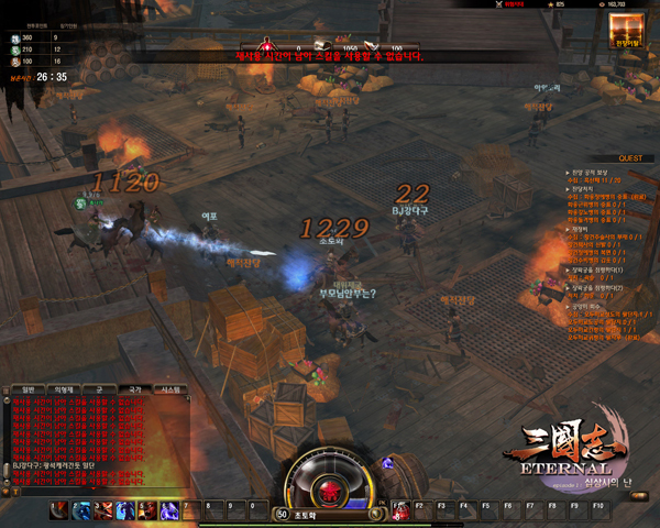 ... 삼국지 게임답게 대립 국가와의 PK 시스템이 게임의 메인 컨텐츠이며, PK를 통해 다른 국가의 플레이어가 소지하고 있는 명예포인트를 빼앗을 수 있다는 확실한 목표를 부여하기 때문에 플레이어는 게임 도중 항상 긴장감을 유지하게 된다. 지난 1,2 차 CBT 를 통해 테스트 하