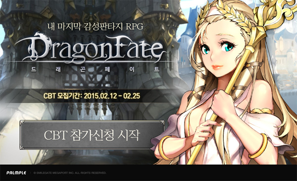... 테스트 참가 신청은 12일부터 오는 25일까지 ‘드래곤페이트 공식 CBT 참가자 모집 페이지(http://event. palmple. com/event/preregist/DF_CBT_8169FB08 )를 통해 진행할 수 있다