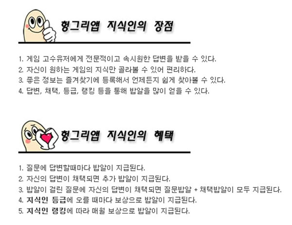 ... 기존 포털 지식인과 가장 큰 차이점은 답변을 해주는 사람이 해당 게임의 고수 게이머라는 점. 기존 포털은 다양한 사용자가 모이는 만큼 게임에 대한 전문적이고 해박한 지식을 가진 사람이 드물다 보니 답변 역시 부족한 부분이 많았다. 하지만 사용자 대부분이 열혈 게이머들로 구성