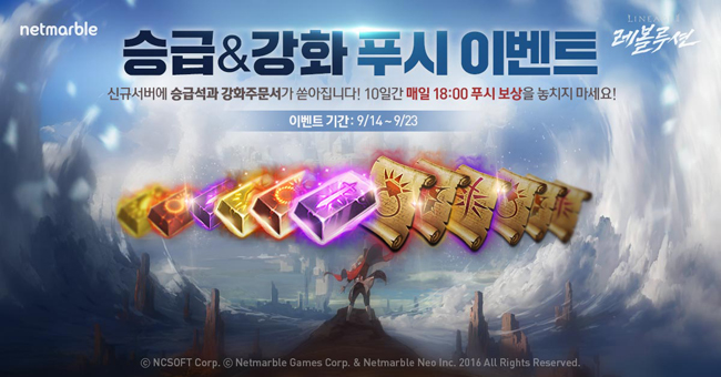 ... 먼저 9월 23일까지 게임에 접속만 해도 게임 재화 및 아이템을 받을 수 있으며, 오는 27일까지는 게임 내 미션 달성 시 난이도에 따라 S등급 연마제 상자, 강화주문서 상자, 스킬포인트 등 다양한 아이템을 획득할 수 있다. 기존 통합 서버 이용자들을 위한 혜택도 준비했다. 게