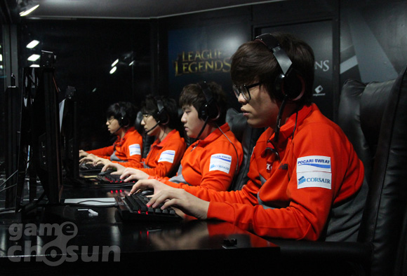 ... 또 삼성은 (잔나)-(시비르, 리신)-(르블랑, 카사딘)을 선택했고, SKT는 (코르키, 자르반4세)-(마오카이, 나미)-(제이스)를 픽했다. SKT는 킬을 만들지는 못했지만 안정적인 운영으로 한 발자국씩 앞서 나갔다. '마린' 장경환(마오카이)은 우월한 라인 푸시력을 바