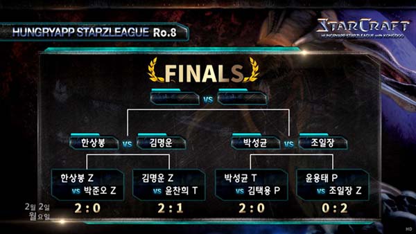 ... 한상봉은 1차전에서 9드론 발업 저글링 러시로 승리한 데 이어, 2차전에서는 뮤탈리스크 싸움에서 완승을 거두며 박준오를 손 쉽게 무너뜨렸습니다. 2경기에서는 김명운이 윤찬희와의 승부에서 2:1 역전승으로 4강행 티켓을 차지했습니다. 김명운은 1차전에서 윤찬희의 올인 공격에