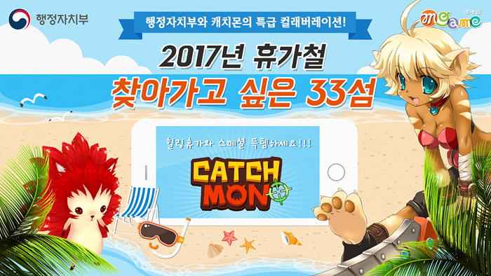 ... 이벤트 기간 동안 전국의 33개 섬에 ‘캐치몬’ 게임 내에서 게임아이템과 게임머니, 게임캐시등을 제공하는 장소인 쉼터 85곳을 설치하고, 각 쉼터당 S, A급 소환수, 게임캐시 등 특별한 아이템을 1회씩 제공한다. 유저들은 놀 섬, 맛 섬, 쉴 섬, 미지의 섬, 가기