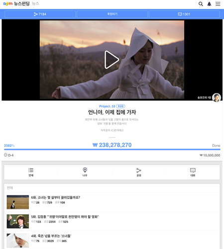 ... 콘텐츠 유료화와 건강한 뉴스 플랫폼 생태계 구축의 일환으로 시작된 뉴스펀딩의 가능성이 입증되면서, 뉴스펀딩에 대한 참여가 전방위로 확대되고 있다. 시사, 경제, 사회, 문화를 넘어 연예, 스포츠까지 콘텐츠 분야가 확대되고, 분야별 기자, 작가, 대학생 등 전문 필자 180여