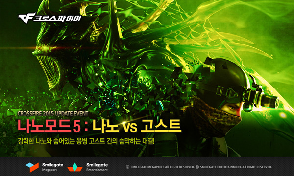 ... 특히 마지막 남은 용병 고스트는 강화영웅으로 변신해 나노와 정면 대결을 펼칠 수 있다. 결국 나노모드5는 적을 감염시키려는 나노와 이를 피하려는 용병으로 나뉘어 플레이하는 숨바꼭질 콘셉트다. 이와 더불어 스마일게이트메가포트는 이번 업데이트를 기념해 다양한 이벤트를 마련했