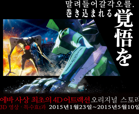... 애니메이션 '에반게리온'을 소재로 제작된 상영관 '에반게리온 더 리얼 4-D'에서는 '에반게리온'을 소재로 만들어진 4D 애니메이션 영상을 관람할 수 있다. 4D 영상인 만큼 의자가 흔들리거나 물이 튀고 비눗방울이 위에서 내려오는 등의 효과도 있다. 관람객이 기다리는 대기