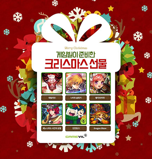 ...최신작 ‘데빌리언’과 ‘나이트 슬링거’는 매일 1회 산타의 선물을 증정하는 이벤트를 진행 중이며 각각 ‘소환권’, ‘젬’, ‘스타볼’, ‘스태미너’ 등 다양한 선물을 제공한다. 특히 ‘데빌리언’의 경우 크리스마스를 맞아 별도의 코스튬을 공개하고, 특정 미션 달성 시 크리스마스 코