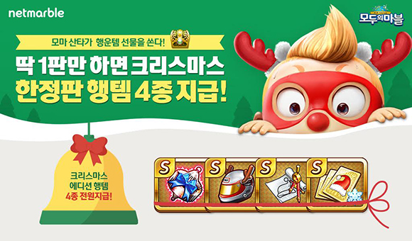 ...또, 27일까지 천사카드 무료, 골드(게임재화) 2배 이벤트 등을 통해 푸짐한 게임재화도 획득 할 수 있다. 넷마블 이정호 본부장은 “간단한 조작법으로 쉽고 빠르게 즐길 수 있는 ‘모두의마블’은 친구, 연인 등과 함께 둘러앉아 즐