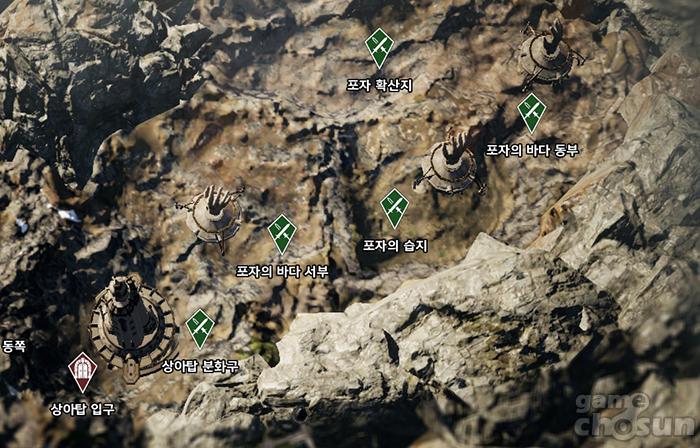 ... 때문에 난이도가 대폭 상승한다는 느낌을 받을 수 있는 곳이기도 하다. 포자의 바다 서부는 같은 공간이지만 두 개의 사냥터로 분리되어 있는 특징이 있다. 지역 하단 결계탑 근처에는 언데드 몬스터가 주축으로 이뤄져 있으며, 맵 상단에는 정령 몬스터와 식물 몬스터가 주축인 사
