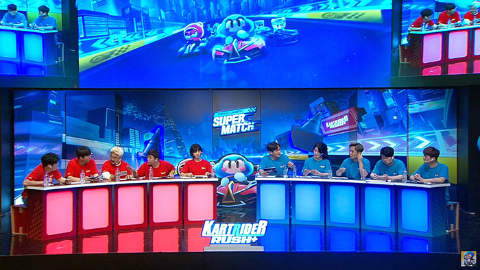... = 카트라이더 러쉬플러스 공식 유튜브 갈무리 배찌 팀에는 김민아를 메인으로 홍진호, 유병재, 김기열과 문호준 선수로 구성됐으며, 다오 팀에는 장성규를 필두로 황제성, 릴카, 김재원과 유영혁 선수로 구성됐다. 각 라운드마다 서로 다른 방식으로 게임이 진행됐으며 5명의 인원이