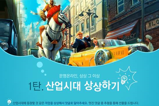 ... 이벤트는 2차례에 나눠서 진행된다. ‘산업 시대 상상하기’는 1월 16일부터 1월 25일까지, ‘현대 시대 상상하기’는 1월 28일부터 2월 9일까지 응모할 수 있다. 추첨을 통해 각 이벤트마다 15명씩 선정하는 당첨자는 1월 28일과 2월 11일에 발표하며 1만 원권 모바