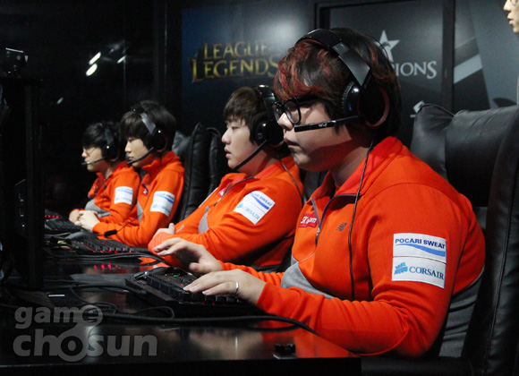 ... 또 KT는 (카사딘)-(브라움,코르키)-(리신,르블랑)을 선택했고, SKT는 (쓰레쉬,자르반4세)-(나르,시비르)-(룰루)를 픽했다. 시작은 KT가 앞섰다. KT는 경기 초반 '마린' 장경환(나르)을 정글과 서포터의 동시 갱킹으로 제압하는 데 성공했다