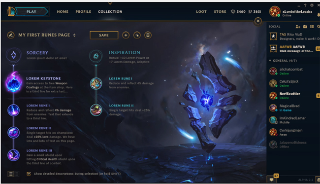 ... 앞서 공개된 룬 시스템 개편에 이어 IP 대체 재화 추가, 레벨 제한 폐지 등을 골자로 한다. 먼저 룬과 특성이 하나로 합쳐진다. 개편된 룬은 무료로 제공된다