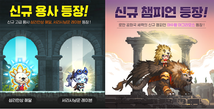 ... 아울러 신규 용사 2종도 업데이트 되는데, 먼저 위저드 계열의 ‘삼라만상 해달’은 글로벌로 진행된 2천만 다운로드 이벤트에서 고급 용사로 제작을 희망하는 캐릭터로 채택된 ‘깨달은 해달’의 고급 용사 버전이다. ‘삼라만상 해달’은 열반 상태에 이른 해달을 모티브로 하여 블록
