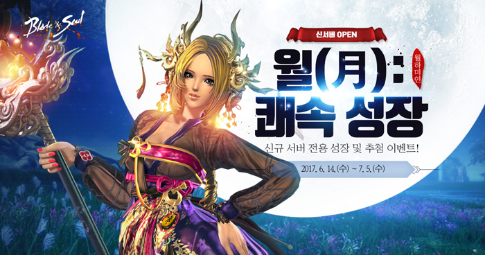 ... 이용자는 새로운 서버(월하미인)에서 블소를 즐길 수 있다. 엔씨소프트는 신규 서버 추가 기념 이벤트(월(月): 쾌속성장)를 진행한다. 이용자는 7월 5일까지 ‘월하미인’ 서버에 캐릭터를 생성하여 참여할 수 있다