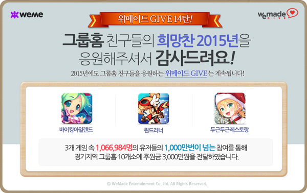 ... 회사 측은 이용자들이 게임을 즐기며 쉽고, 부담 없이 기부활동에 동참하는 방식으로 프로그램을 진행한 점이 적극적인 참여로 이어진 것으로 분석하고 있다. 특히, 이번 캠페인에서는 예상보다 빨리 목표 후원금 총 3,000 만원을 달성했으며, 이 후원금은 경기지역 내 10개소