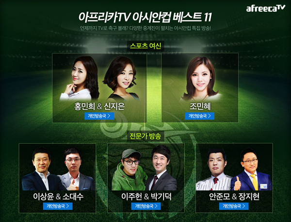 ... 특히, 2015년의 첫 국제 대회로 55년 만에 아시안컵 우승에 도전하는 한국 대표팀의 선전과 함께 개최국 호주, 영원한 라이벌 일본, 중동의 강호들과의 치열한 대결로 관심을 모으고 있으며, 손흥민, 기성용, 이청용, 구자철 등 축구 스타들이 활약하는 모습도 확인할 수 있다.