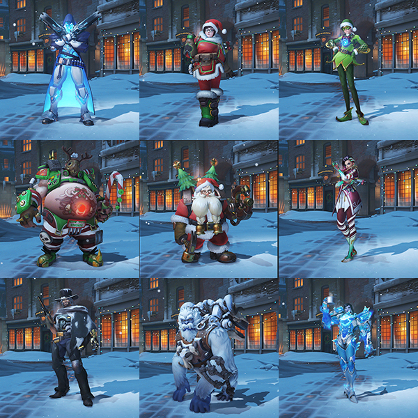 ...이번 겨울 이벤트와 함께 왕의길과 하나무라 등이 눈덮힌 크리스마스 분위기로 변경됐으며, 약 100여종의 새로운 수집품이 들어 있는 겨울나라 전리품 상자가 등장했다. 겨울나라 전리품 상자에선 로드호그와 루시우, 트레이서, 메이, 토르비온, 리퍼, 맥크리, 솜브라, 윈스턴, 자리야,