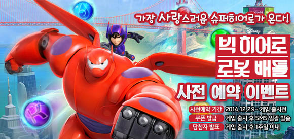 ... 친숙한 3매치 플레이 방식으로 진행되는 <빅 히어로:로봇 배틀>은 육성, 수집 등 RPG 요소들이 가미되어 기존의 퍼즐게임과는 다른 수준 높은 전략성이 요구 된다. 또한, 다른 친구들과 함께 팀을 이루어 임무를 완수하고 더 큰 보상을 획득할 수 있으며, 수백 여종이