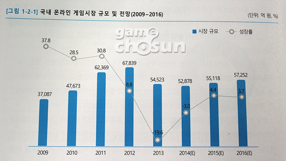 ... 일단 시장규모부터 살펴보자. 어느새 성장기를 지나 성숙기에 접어든 국내 PC온라인게임 시장 규모는 2014년 약 5조 4,523억 원(2014 대한민국 게임백서, 이하 2014 게임백서)로 추정되고 있다. 2009년부터 2012년까지 급성장하다가 2013년에 전년대비 19