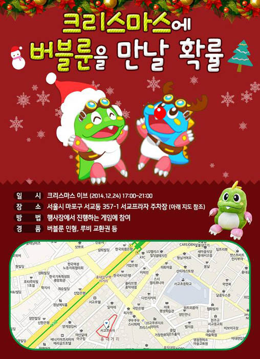 ... 상품은 퍼즐버블 for Kakao의 캐릭터 버블룬 인형과 게임에서 사용 가능한 아이템 쿠폰이 준비되어 있다. 한편 이번 행사장에서는 퍼즐버블 for Kakao뿐만 아니라 구미코리아의 히트작인 '브레이브프론티어 for Kakao' 유저의 경우 '디시에서 왔습니다!'를 외치면