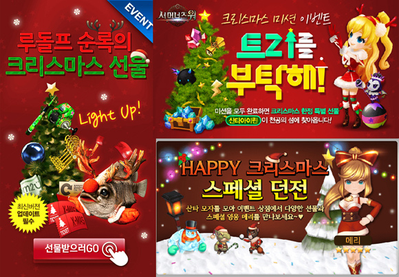 ... ‘낚시의신’은 1월 5일까지 각 낚시 지역에 상시 출몰하는 ‘산타클로스 피쉬’와 특정 시간에만 발견되는 ‘루돌프 순록’을 선보인다. 이벤트 기간에 접속하는 유저 전원은 높은 데미지와 추가옵션 5가지 기능을 갖춘 ‘체험판 X-MAS 낚싯대’를 지급받고 여러가지 아이템을 제공하는