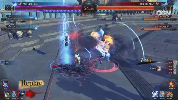 ... 한준호는 암살자 채영훈을 상대로 시종일관 압도적인 모습을 보였고, 마령의 공중콤보 2번으로 손쉽게 승리를 따냈다. 2세트는 한 끗 승부였다. 서정호가 시작과 동시에 박진유에게 공격을 퍼부으며 우위를 점하는 듯 했다