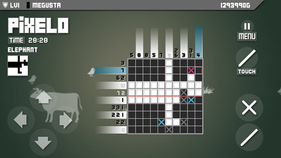 ... 픽셀로는 기존의 흔히 알려진 네모네모 로직과 동일한 퍼즐에 RPG요소를 접목시킨 게임이다. 퍼즐게임에 경험치와 돈의 개념을 도입하고 레벨에 올라감에 따라 기능들이 조금씩 해금되는 시스템을 채택했다. 현재 500개 가량의 스테이지가 제공되며 매일 1개의 새로운 퍼즐이 추가되고
